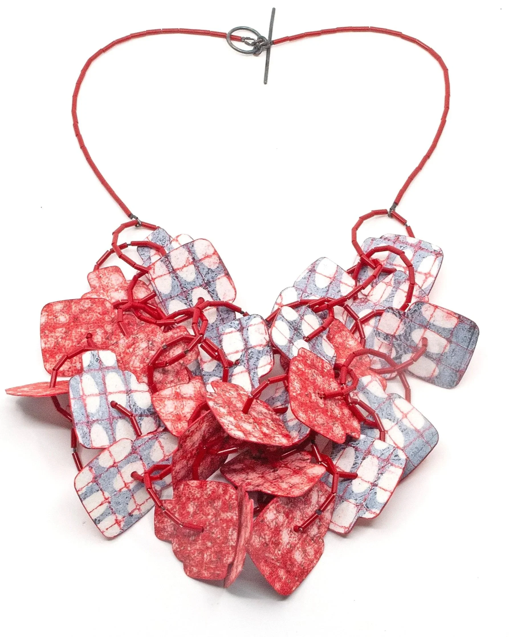 Printmaker’s Necklace: hand printed washable paper, glass, sterling silver, steel